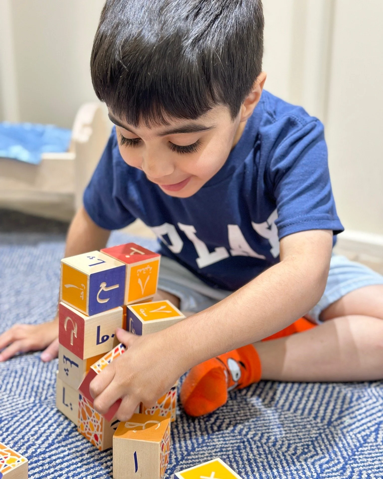 3. Picture blocks are some of our favorites to explore because they provide an added layer of educational value to block play time. Picture blocks are typically cube shaped and have illustrative information printed on each side. We love Uncle Goose’s assortment of picture blocks that range from the planets and moon phases, to insects and dinos, to sign language and classic ABC blocks.